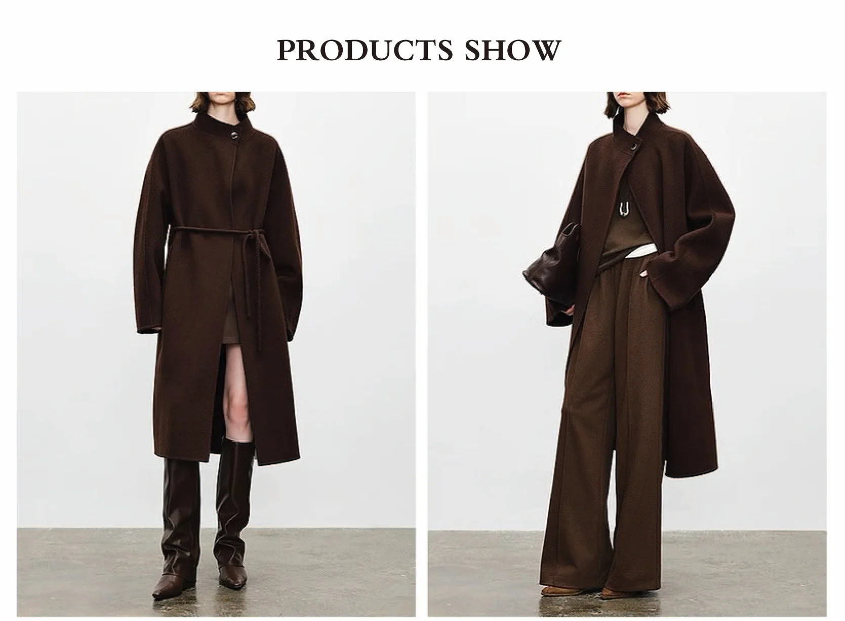 Women's Handmade High Quality Woolen Coat Long Winter Outerwear with Button Closure and Belt